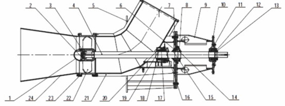1-導(dao)流罩 2-葉輪鎖緊(jin)蓋 3-葉輪卡環 4-軸(zhóu) 5-泵支架 6-下軸承(chéng)壓蓋 7-下軸承下(xia)擋套 8-下軸承盤(pan) 9-軸承支架 10-軸承(chéng)墊日 11-上軸承盒(he) 12-軸承墊圈 13-上軸(zhóu)承壓蓋 14-下軸承(chéng)上擋目 15-下軸承(chéng)壓蓋 16-填料壓☀️蓋(gai)組件 17-水封環 18-填(tián)料箱 19-填料 20-軸套(tao) 21-泵體 22-葉輪 23-短💯節(jie) 24-吸入錐管